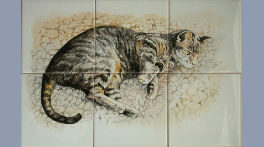 Inspired by her father, Harry Vaux, who was an enthusiastic and successful watercolourist, Caroline Boa has painted most of her life. However, some 20 years ago, she became involved with the traditional art of painting on china, porcelain and ceramics. After several years spent mastering the techniques, which have changed little over the centuries, she began concentrating on creating tile panels for kitchens, conservatories and bathrooms. Uniting this with her passion for animals, she has exhibited at Crufts, The Supreme Cat Show and a number of other championship shows around the country.